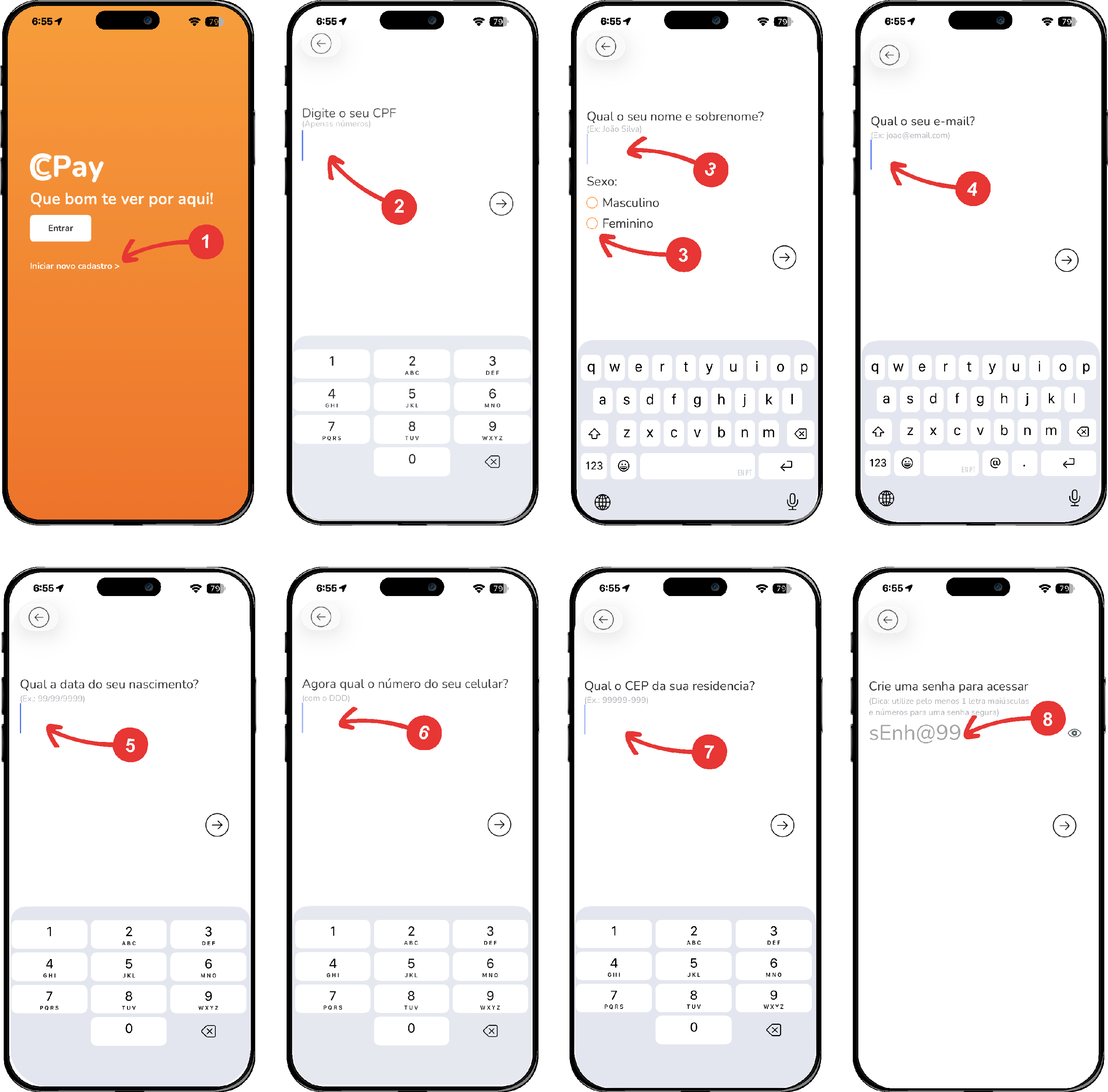 Para criar sua conta no CantinaPay, siga os passos abaixo: